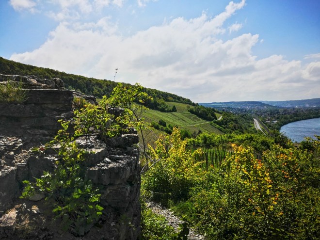 Eine grandiose Aussicht hat man vom Felsvorsprung mit der Ruine Ravensburg zwischen Veitshöchheim und Thüngersheim. Aber auch in nächster Nähe gibt es viel zu entdecken. Das Naturschutzgebiet rund um die Ruine ist Lebensraum für seltene Tiere und Pflanzen. Auch das Projekt Main-Muschelkalk ist dort mit Flächen, die gezielt offen gehalten werden präsent. Diese Flächen sind wertvolle Lebensräume für seltene Arte, die ansonsten verloren gehen. Erst vor kurzem wurde ein Weinberg mit alten Rebsorten aufgepflanzt – ein alter fränkischer Satz. Vorbild dafür sind die Weinberge wie sie bis Ende des 19. Jahrhunderts bestanden. Die Winzer pflanzten unterschiedliche Rebsorten um Witterungsbedingungen auszugleichen und mit früh- und spätreifenden Sorten harmonsiche Weine herzustellen. Rebanlagen wie diese helfen die alten Sorten zu erhalten und geben eien Einblick, wie früher Wein angebuat wurde.