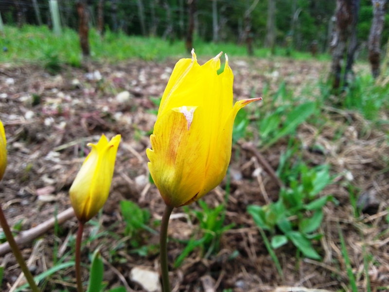Die Weinbergtulpe auf dem Etikett steht für die naturnahe Anbauweise und biologische Vielfalt, die ich in meinem Weinberg anstrebe. Der Weinberg wird von mir ohne den Einsatz von Herbiziden bewirtschaftet. Der Bewuchs in den Zeilen wird maximal 2 x im Jahr gemulcht.