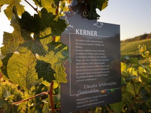 Ein Spiegelbild dieser Lage ist mein Kerner. Ein hell funkelnder Wein aus rund 45 Jahre alten Rebstöcken, der im Gaumen sein frisches Aroma entfaltet. Als Kabinett ist er ein excellenter Essensbegleiter, überzeugt aber auch als Schoppenwein. Eine feine Säure ergänzt die Fruchtigkeit ohne sie zu dominieren.