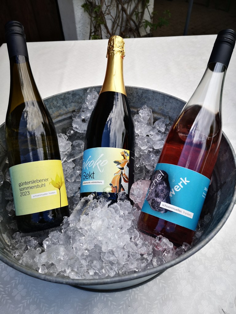 Ein besonderes Schmankerl ist mein Sekt. Traditionelle Flaschengärung durch die Sektkellerei Höfer veredelt den Wein zu einem prickelnden Hochgenuss. Der 2022er überzeugt als reifer harmonischer und angenehm fruchtiger Sekt. Im Buket kann man Aprikosenmarmelade, reifen Duftapfel und Honigmelone, Holunder- und Akazienblüte sowie kräutrige Noten wie frischen Oregano und Minze erkennen. In Verbundenheit mit unserem neuen Wohnort Veitshöchheim heißt er jetzt Rokoko Sekt und hat ein neues Etikett bekommen. Dieses wurde zusammen mit der Künstlerin Ulrike Zimmermann und dem Designbüro Frau Content entworfen und umgesetzt und zeigt Erato, eine Muse, die als Figur vor dem Veitshöchheimer Rokokoschloss ausgestellt ist.